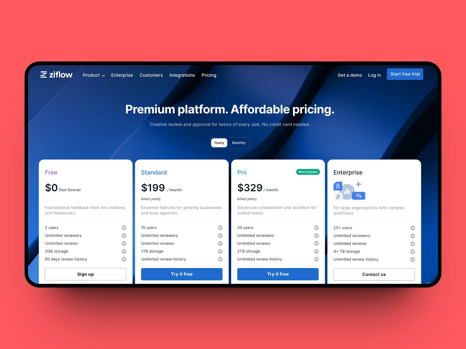 - Pro ($ 329 / month): Advanced collaboration and workflow for scaled teams.