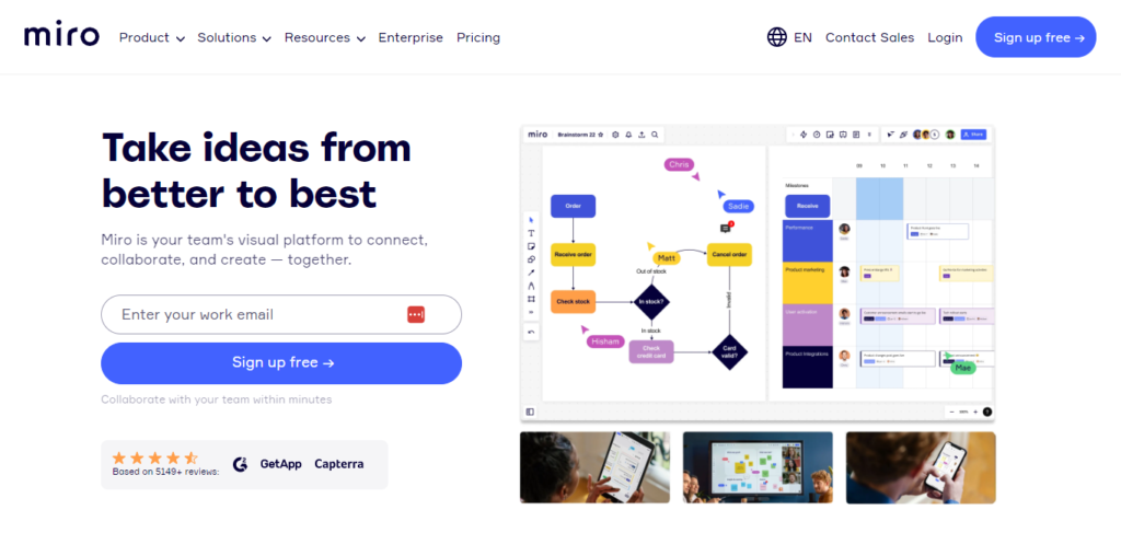 With Miro, you can collaborate on a virtual whiteboard using templates such as sticky boards, user journeys, and so on in real time. It is used to create affinity diagrams, empathy maps, low-fidelity trip maps, and other forms of collaborative analysis.