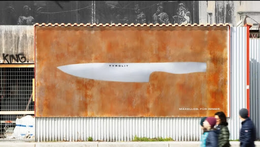 Within a few weeks, the surrounding was covered with rust, leaving just the shape of a knife untouched. The tagline “Flawless. Forever.” drives home the message and gets instant attention. Who wouldn’t look at a huge knife on a board of rust?